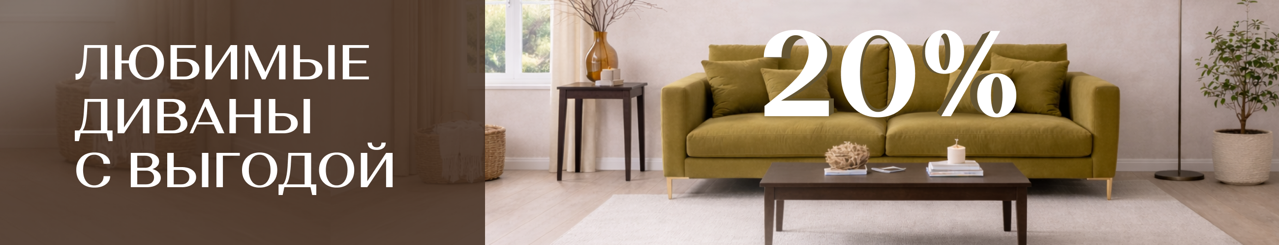 Диван АННИКА NEW 2-х местный, опоры древесные Охра (River 10), Велюр